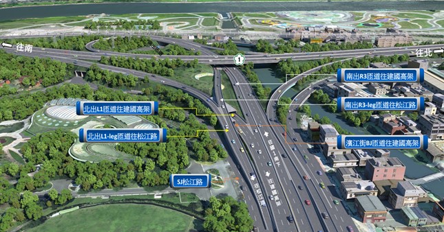 本計畫完工後,增設之南出往松江路匝道除了可提前分流國1南出往松江路車流、降低建國高架北側路段交織量,亦可減少下民權東路(農安街)匝道車流,縮短出口匝道排隊車流長度,降低對主線之干擾並紓緩國道1號圓山交流道之交通壅塞情形,提升該路段交通服務水準。