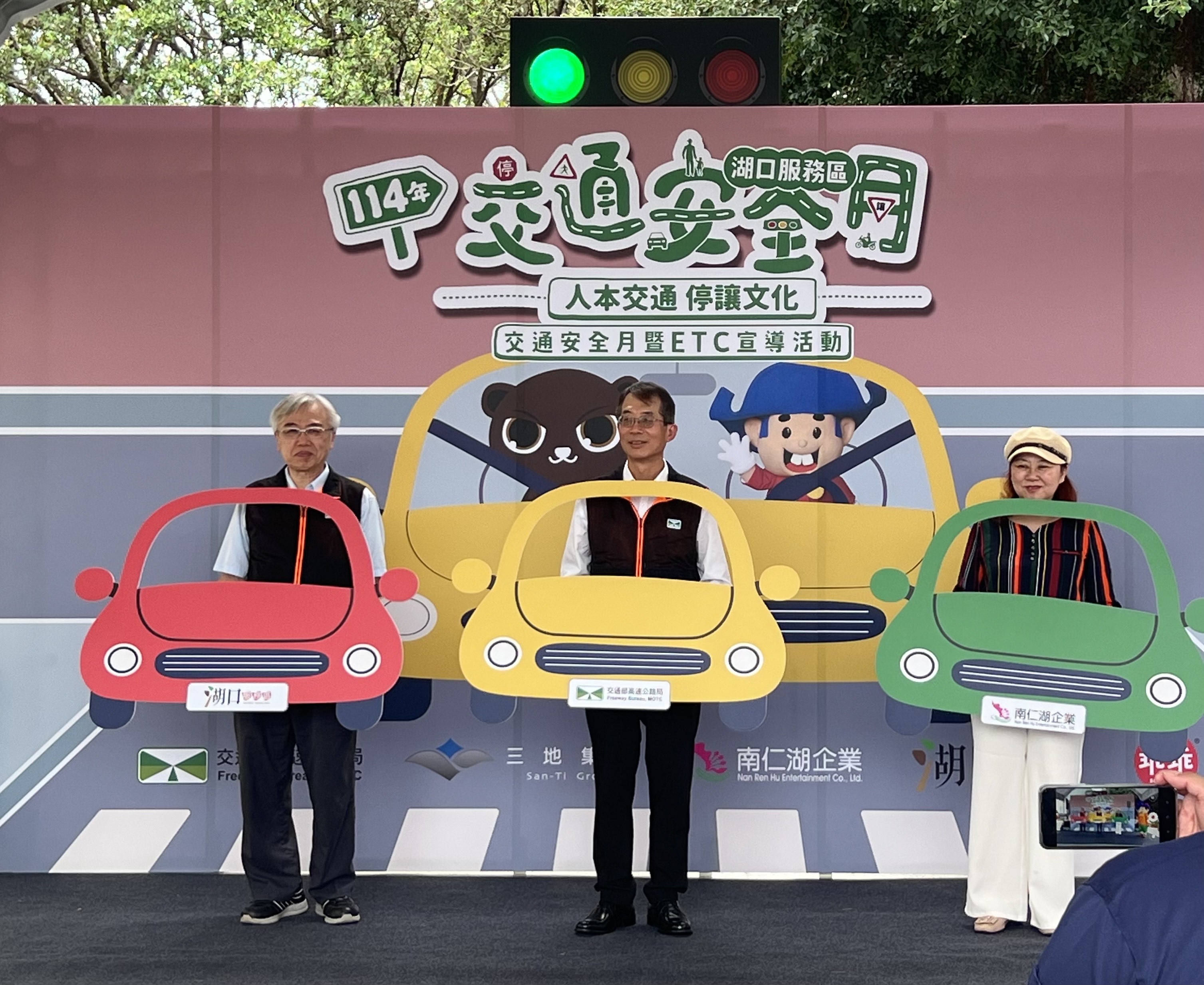 為了響應交通部每年9月推動的交通安全月活動,高速公路局與南仁湖公司今日在湖口服務區共同舉辦宣導活動。
