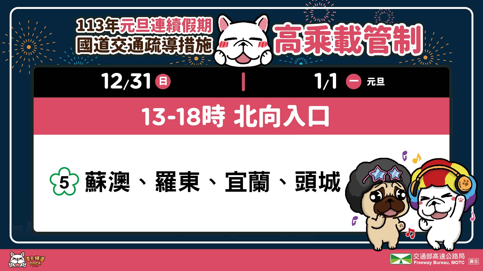112.12.07 元旦連假及假期前一日國5易壅塞,請搭乘公共運輸或改走替代道路